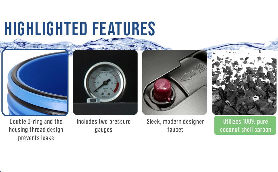 - Stage 2 & 3: The dual carbon blocks effectively removes up to 99% of chlorine and reduces pesticides, benzene, radon, VOCs, THMs, foul taste & odor and other impurities commonly found in tap water.