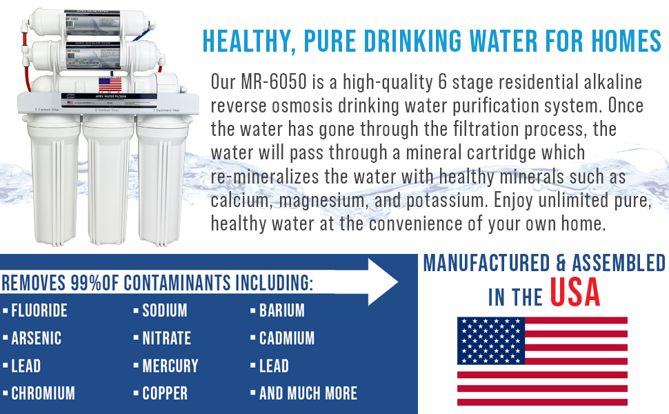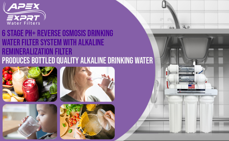 - Advanced Filtration: The 6 stage reverse osmosis system combines advanced reverse osmosis filtration technology with a re-mineralization process to provideyou with ultra-pure, alkaline water that is rich in essential minerals.